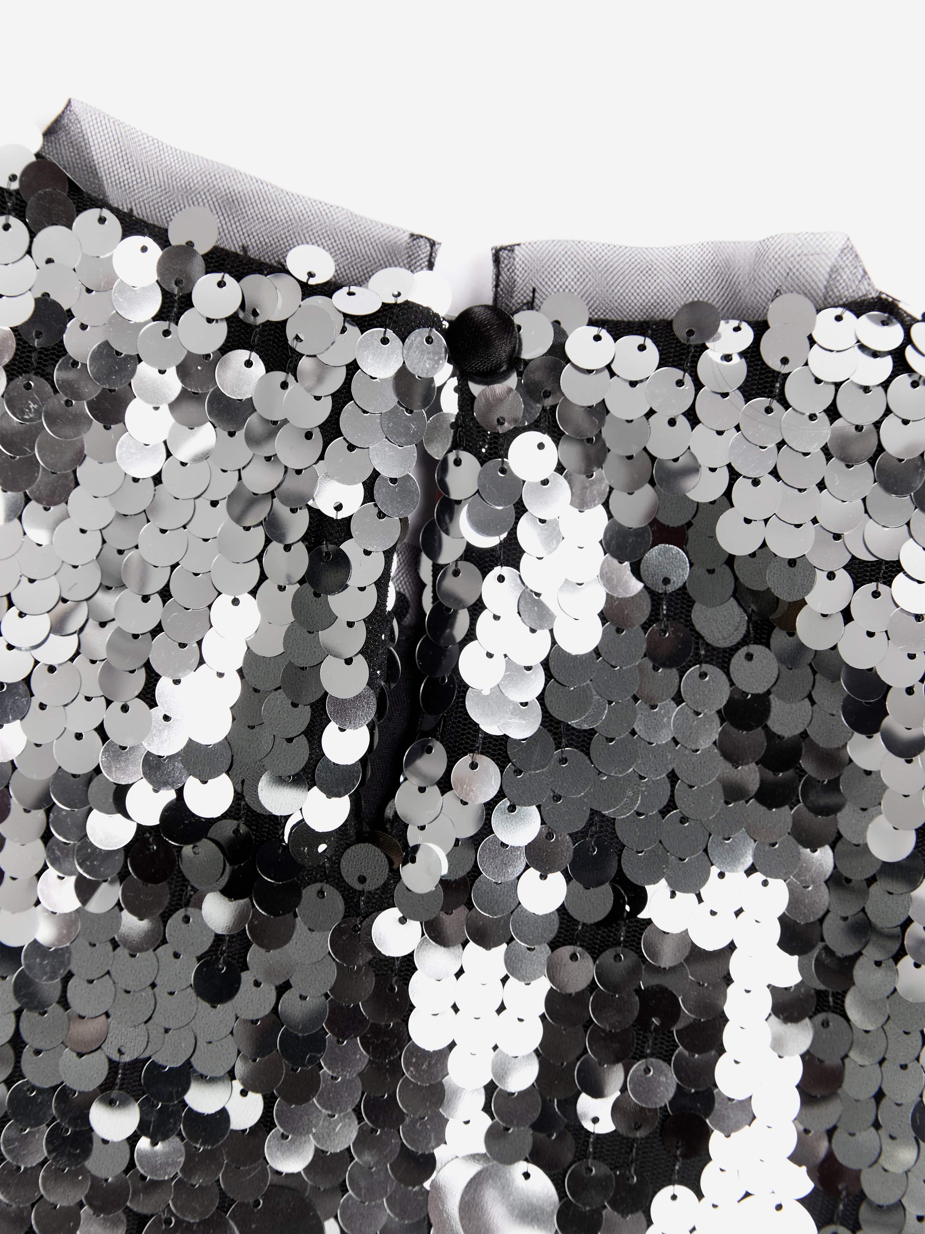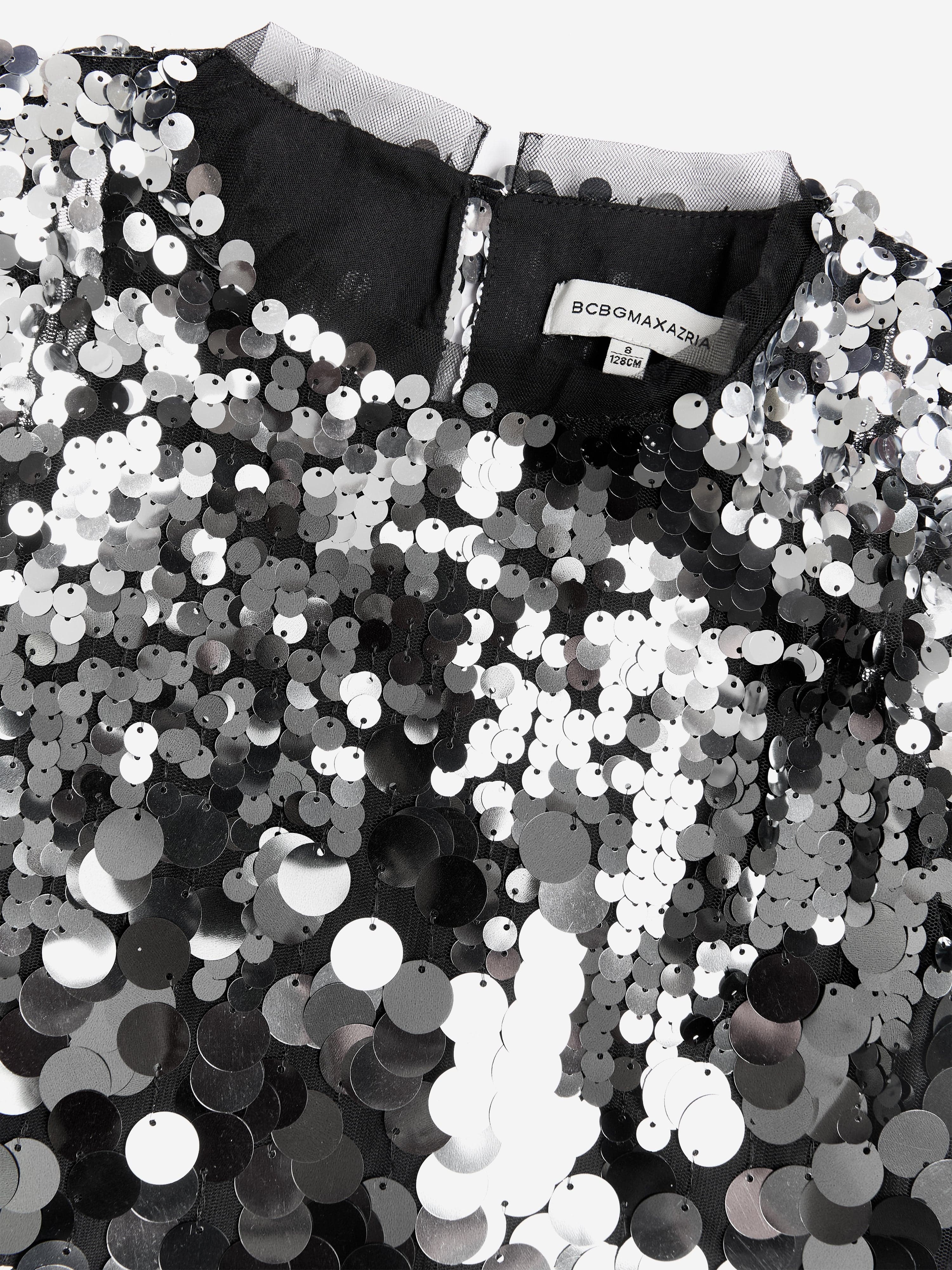 BCBGMAXAZRIA incorporate beautiful high quality fabrics into their unforgettable designs. This girls silver crop top showcases a refined sequin outlook.