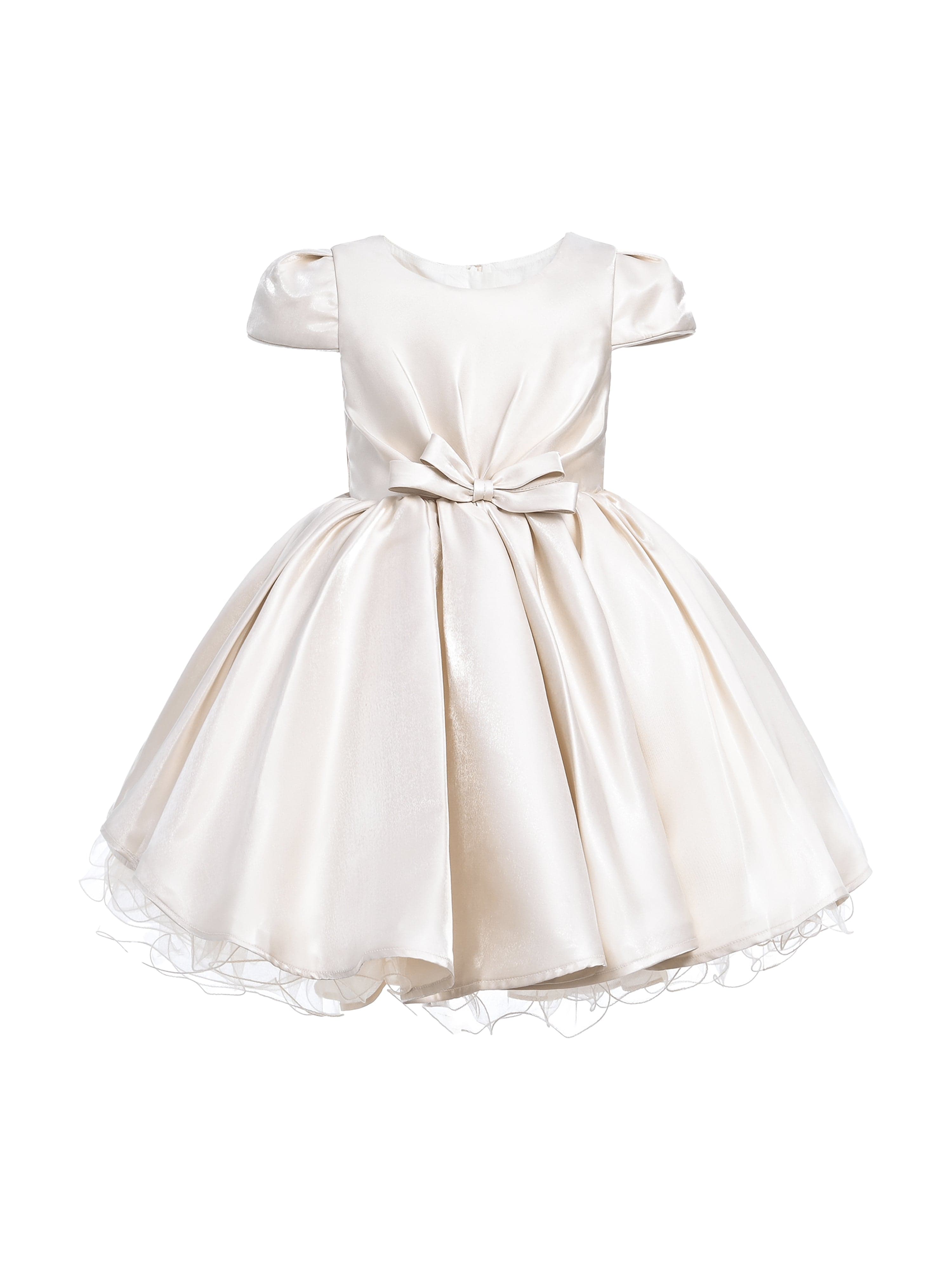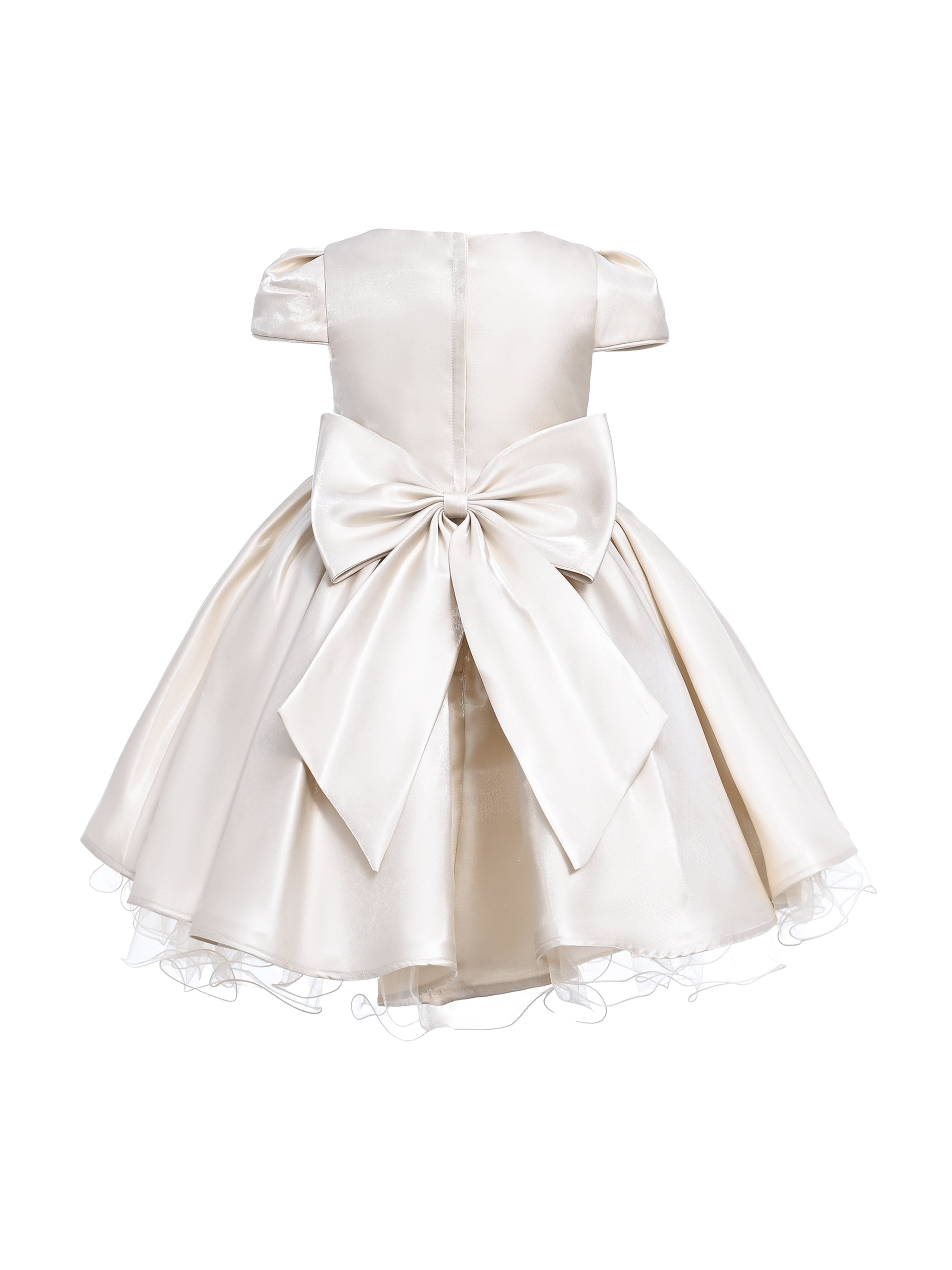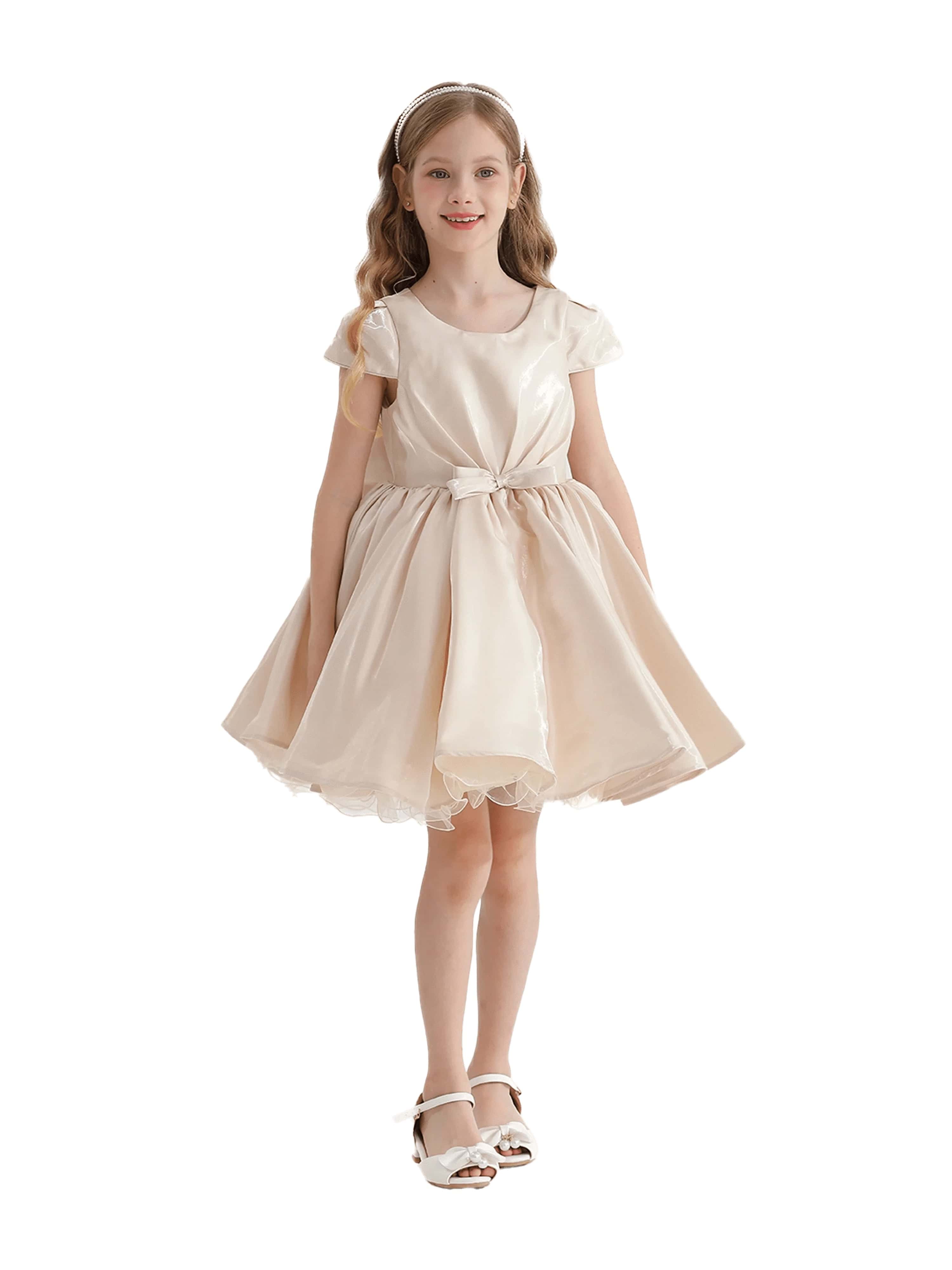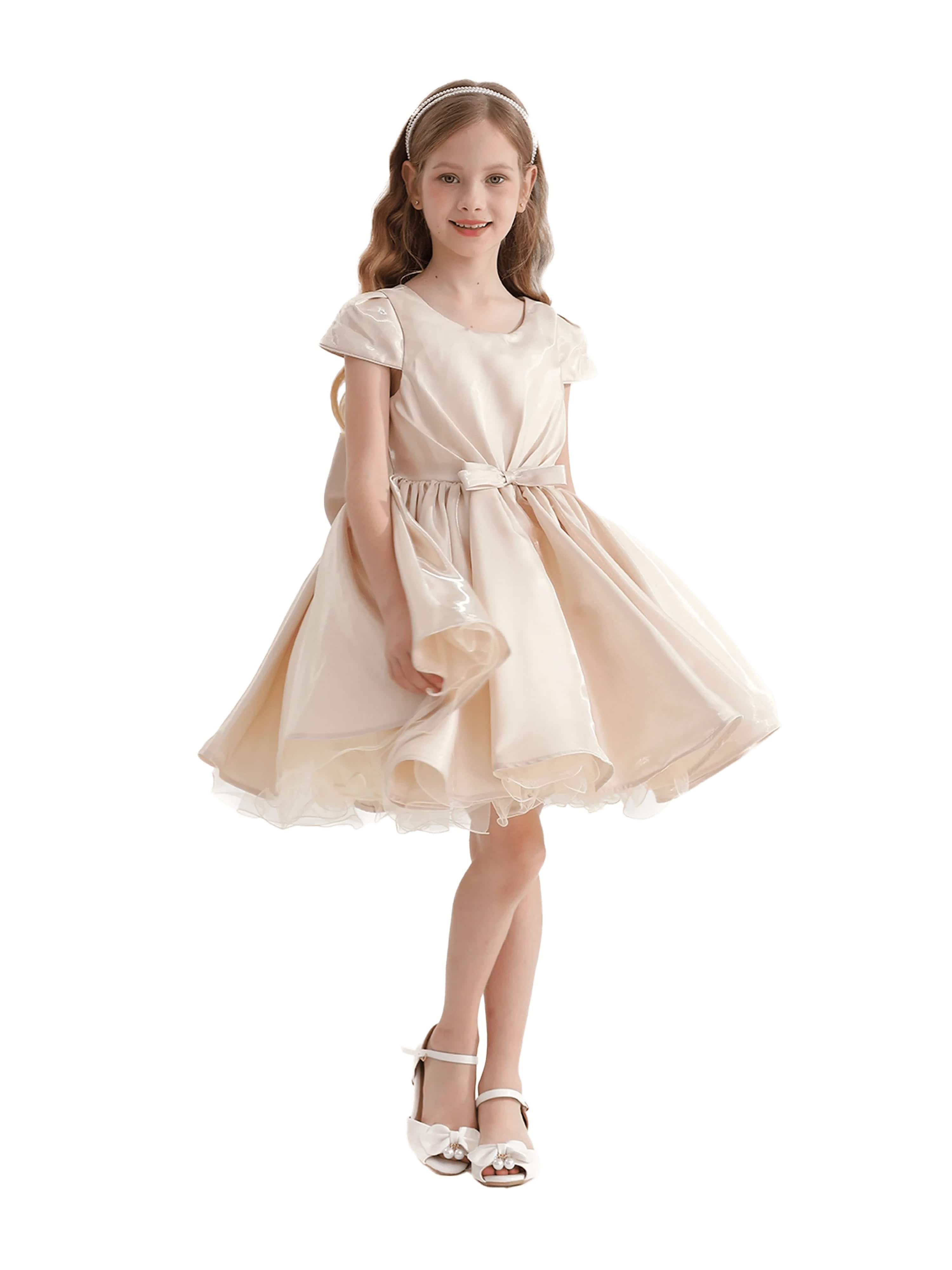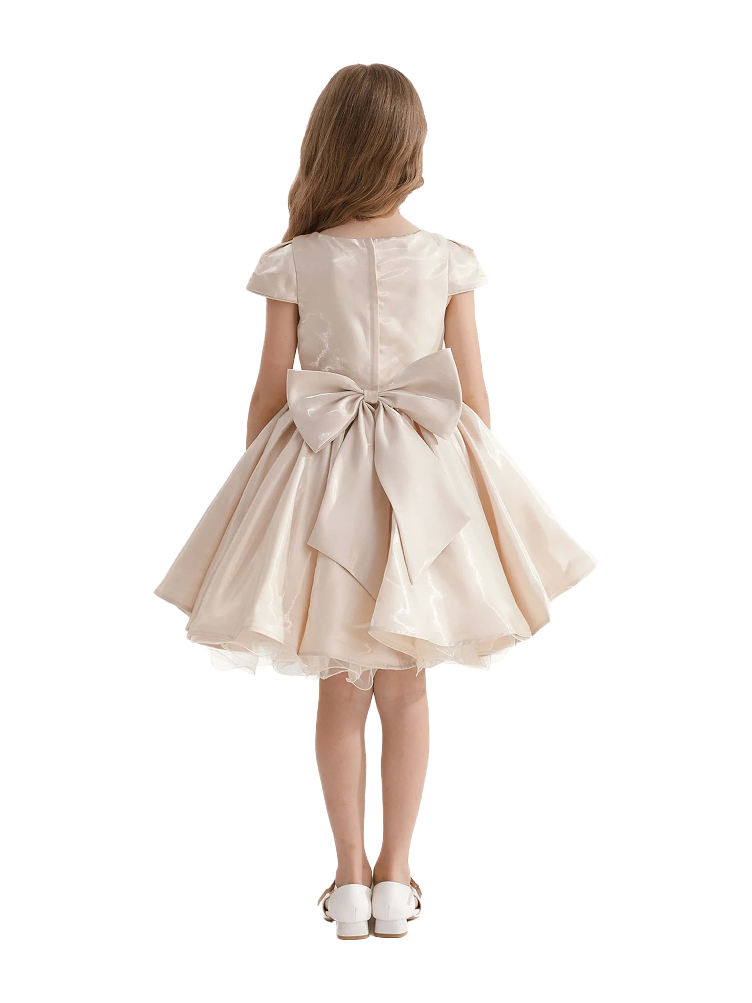 The Champagne Bow Short Solera Dress by Tulleen is the perfect choice for any young girl who loves to stand out in style, offering comfort and beauty in every step.