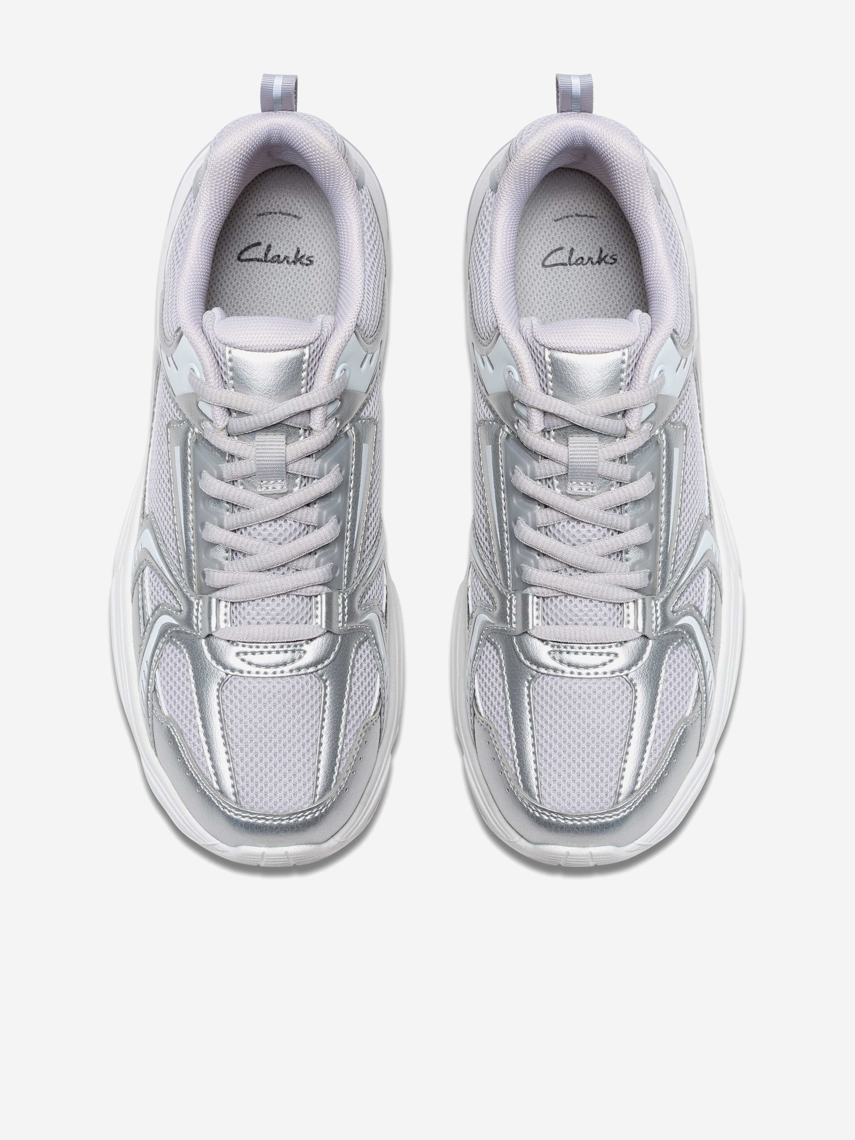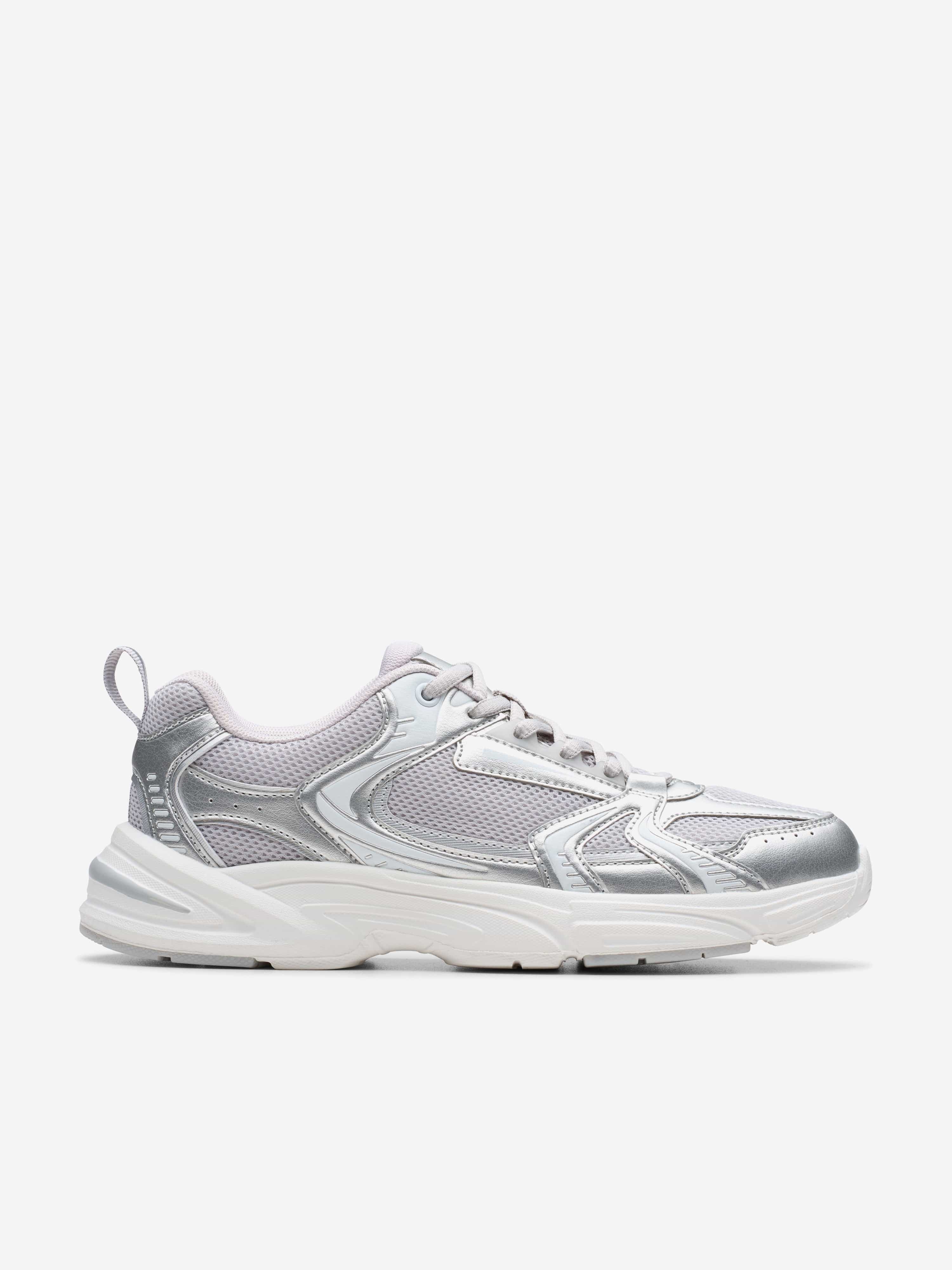 Clarks Girls Crafton Move Trainers in Silver (Wide Fit)