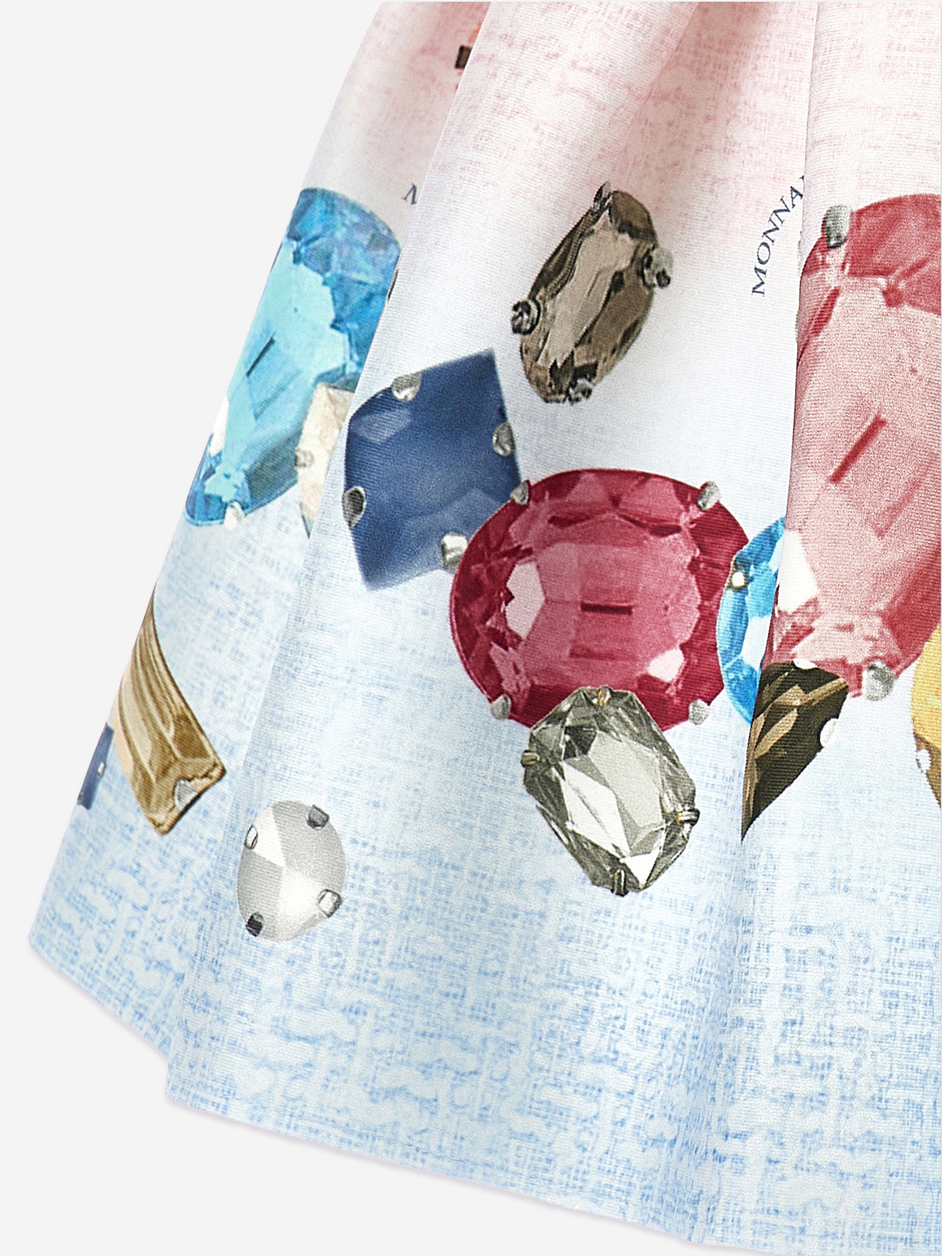 Monnalisa's dreamy Avant-Garde aesthetics are both charming and divine. This girls skirt is woven in a contrasting design with multicolour jewel print and an elasticated logo.