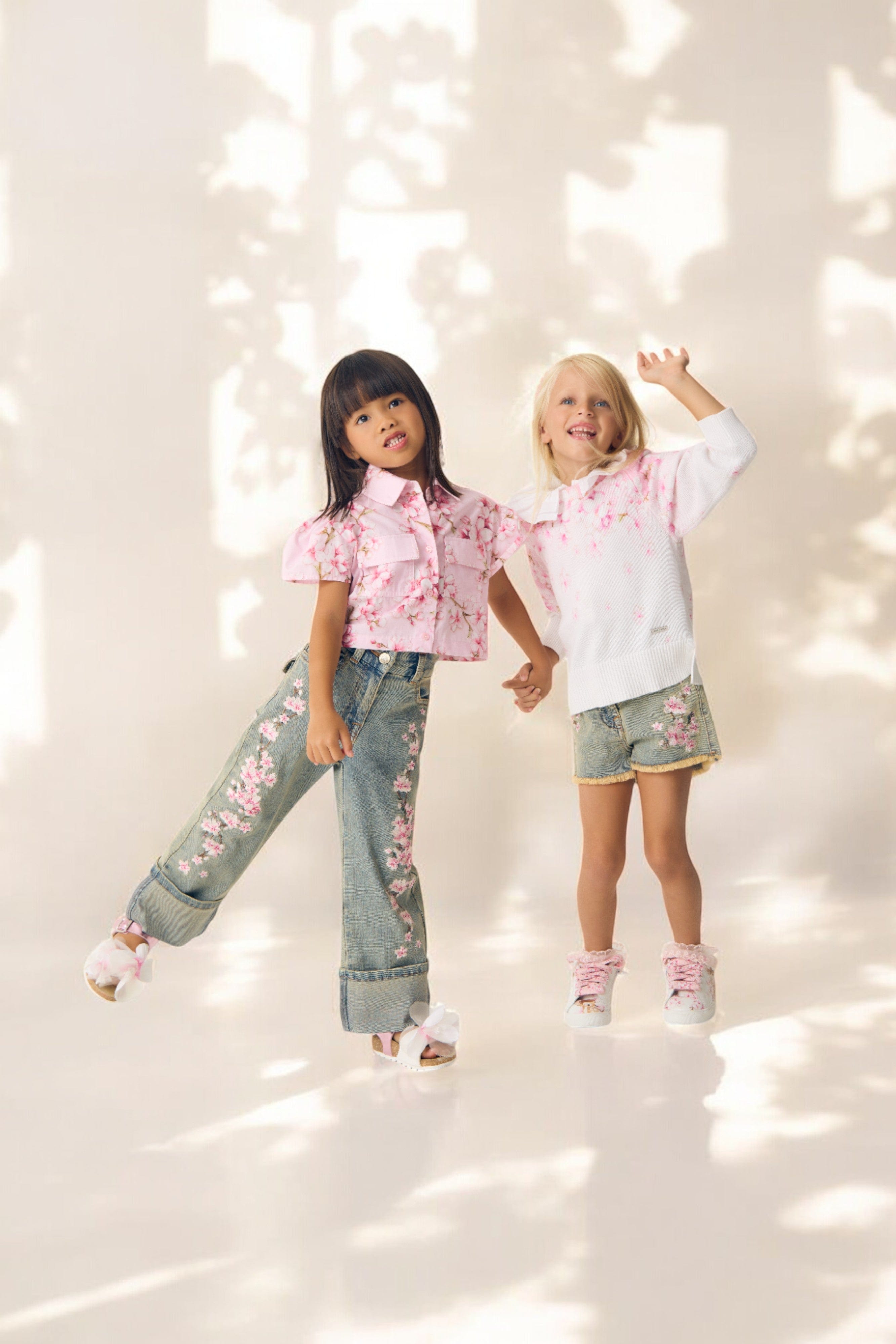 Monnalisa Girls Peach Blossom Denim Shorts in Blue