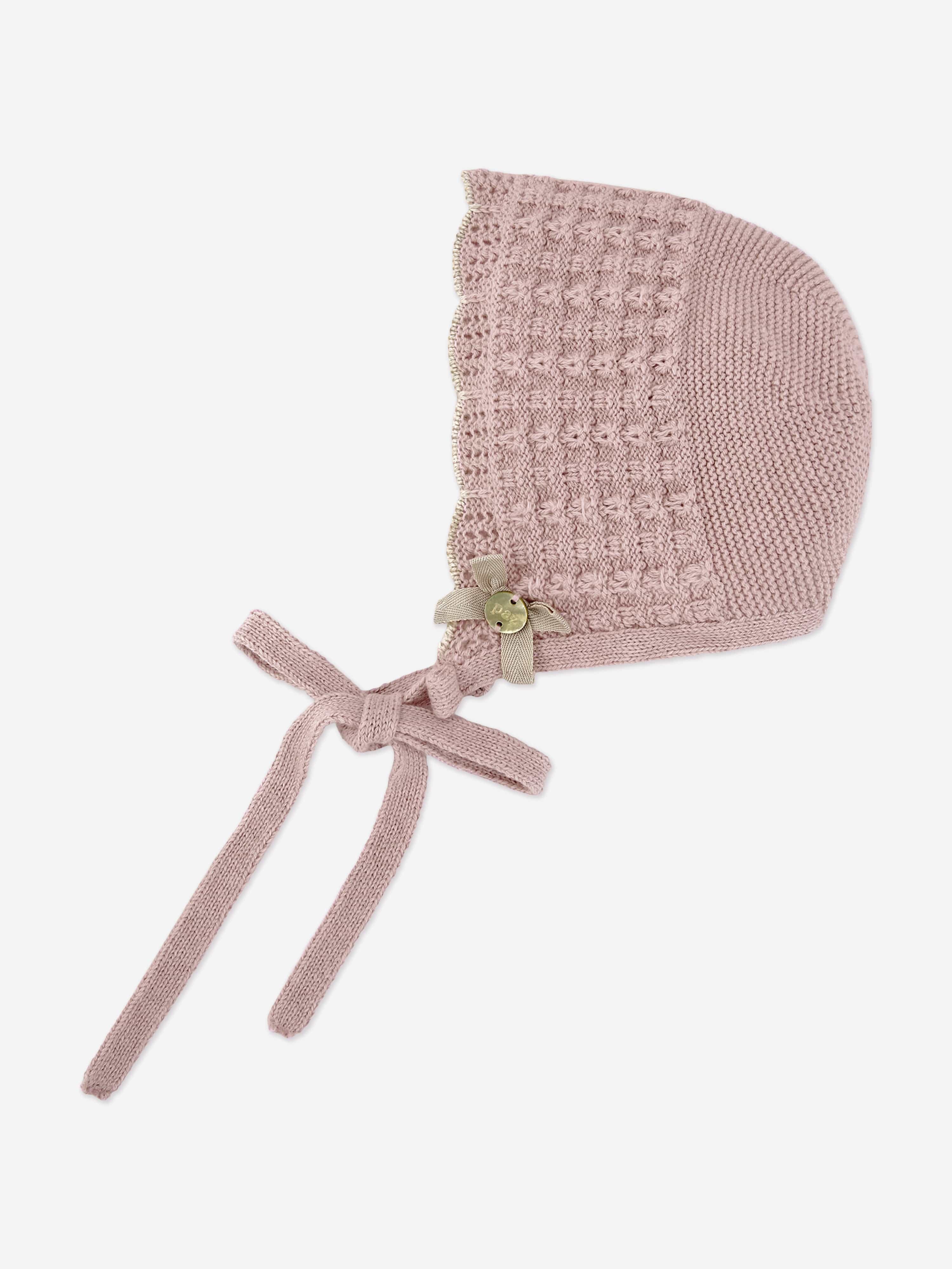 Introducing the exquisitely crafted Baby Girls Knitted Bonnet in Pink by Paz Rodriguez. An essential addition to your little darling's AW2025 wardrobe, this piece emanates elegance and sophistication: