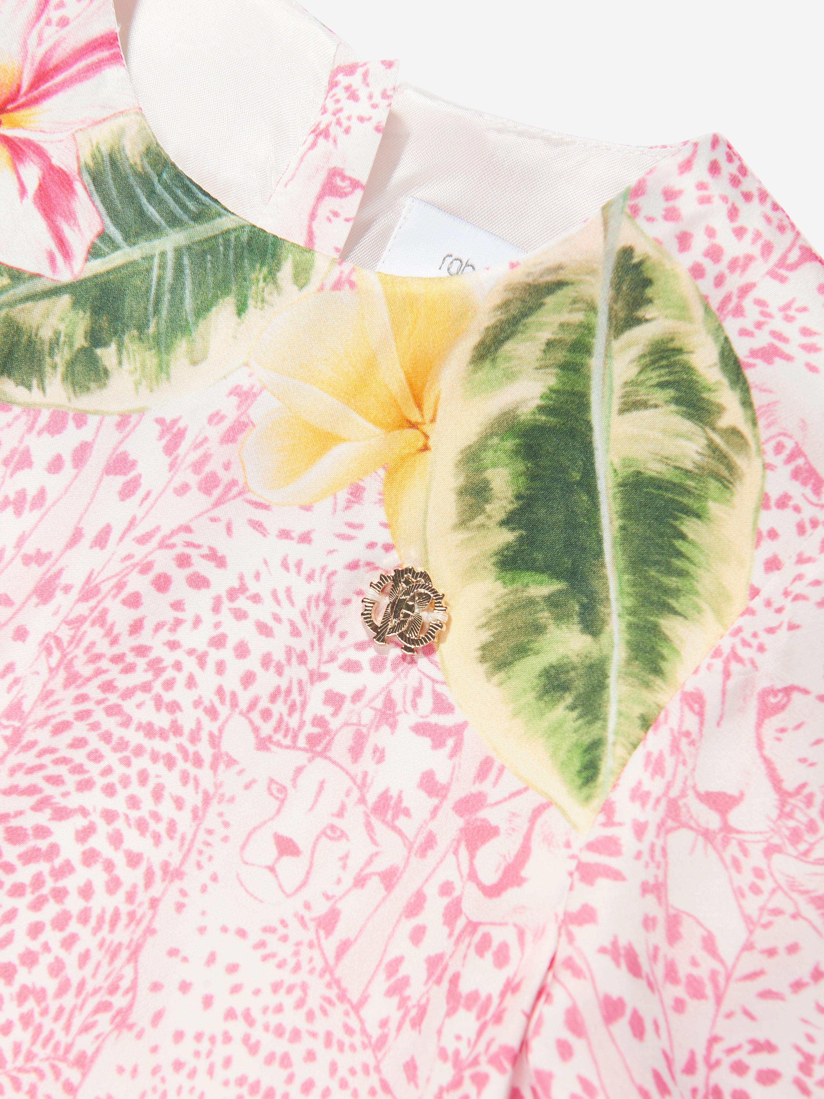 Roberto Cavalli Girls Silk Floral Dress in Pink